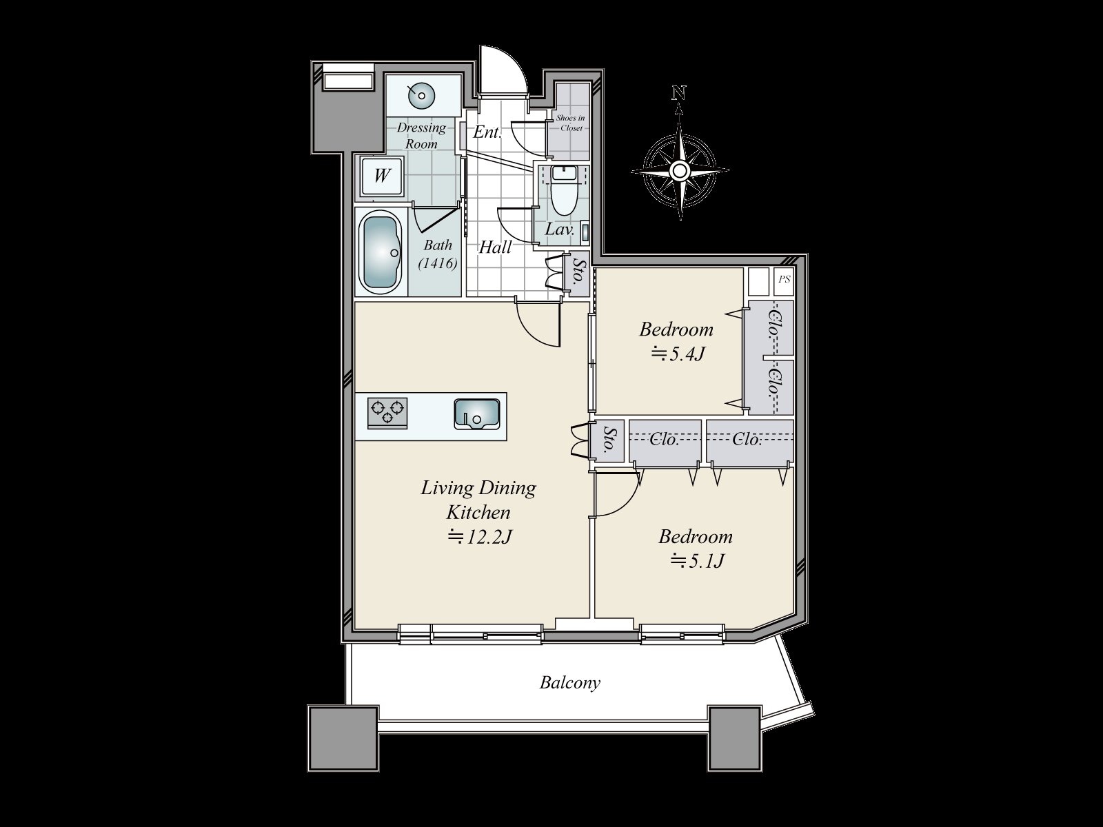・2LDK of 55.16 square meters of exclusive area