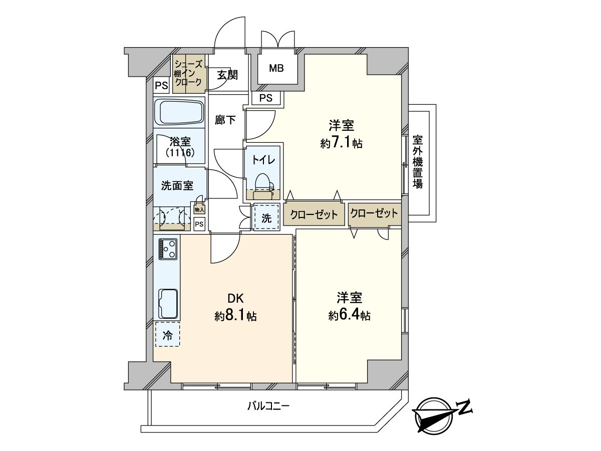 ○ 2DK of 50.84 square meters of exclusive area