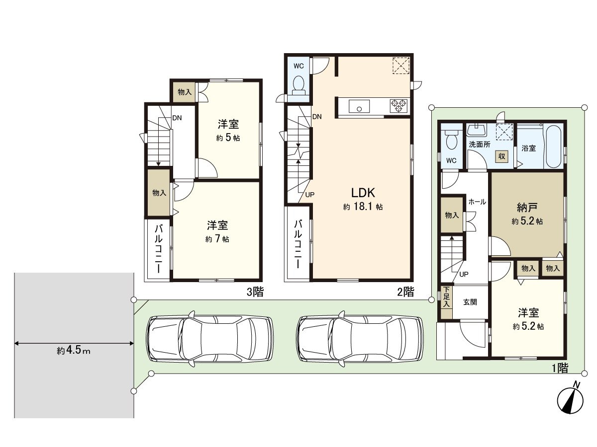 ・Wood 3-story bldg., 3LDK+S Newly-Built house