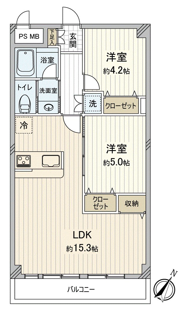 ○2LDK of about 54 square meters of exclusive area