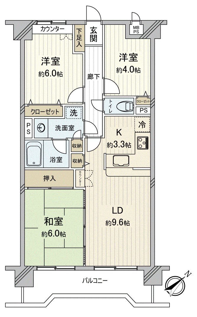 ○3LDK of about 66 square meters of exclusive area