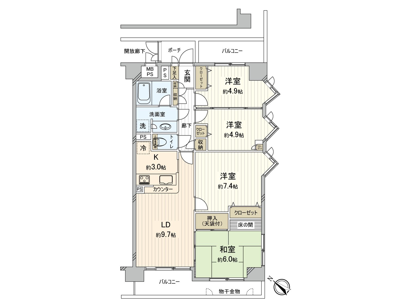・4LDK which exposure to the sun has good because of corner unit of the Southwest X Southeast
