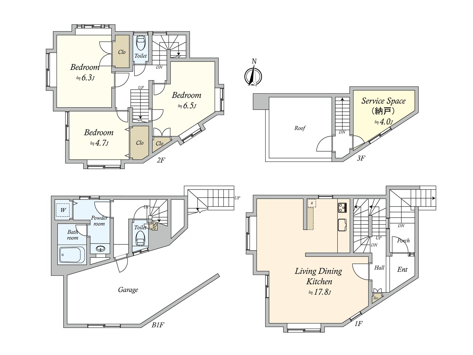 ・The storing that there are Plan of 3 stories with 1 basement 3SLDK, storeroom about four quires in is fulfilling