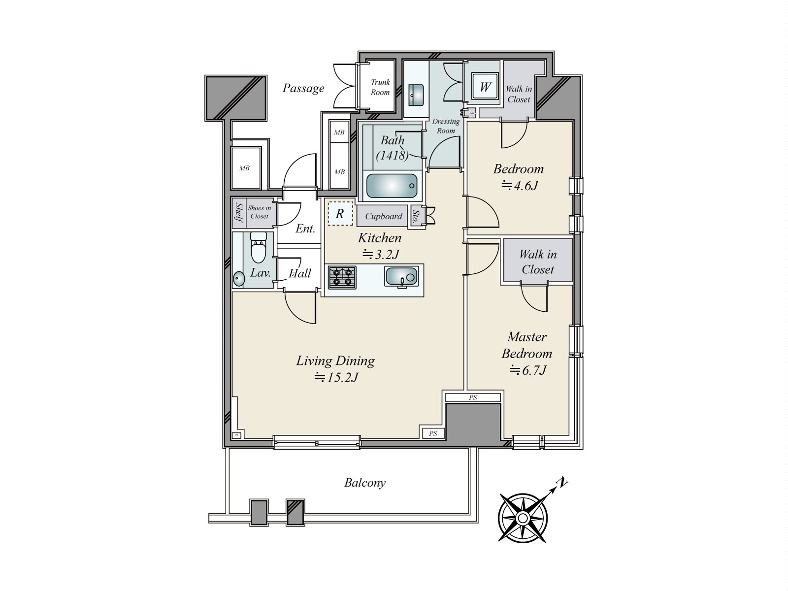 * 70.39 square meters of the eleventh-floor partial 2LDK