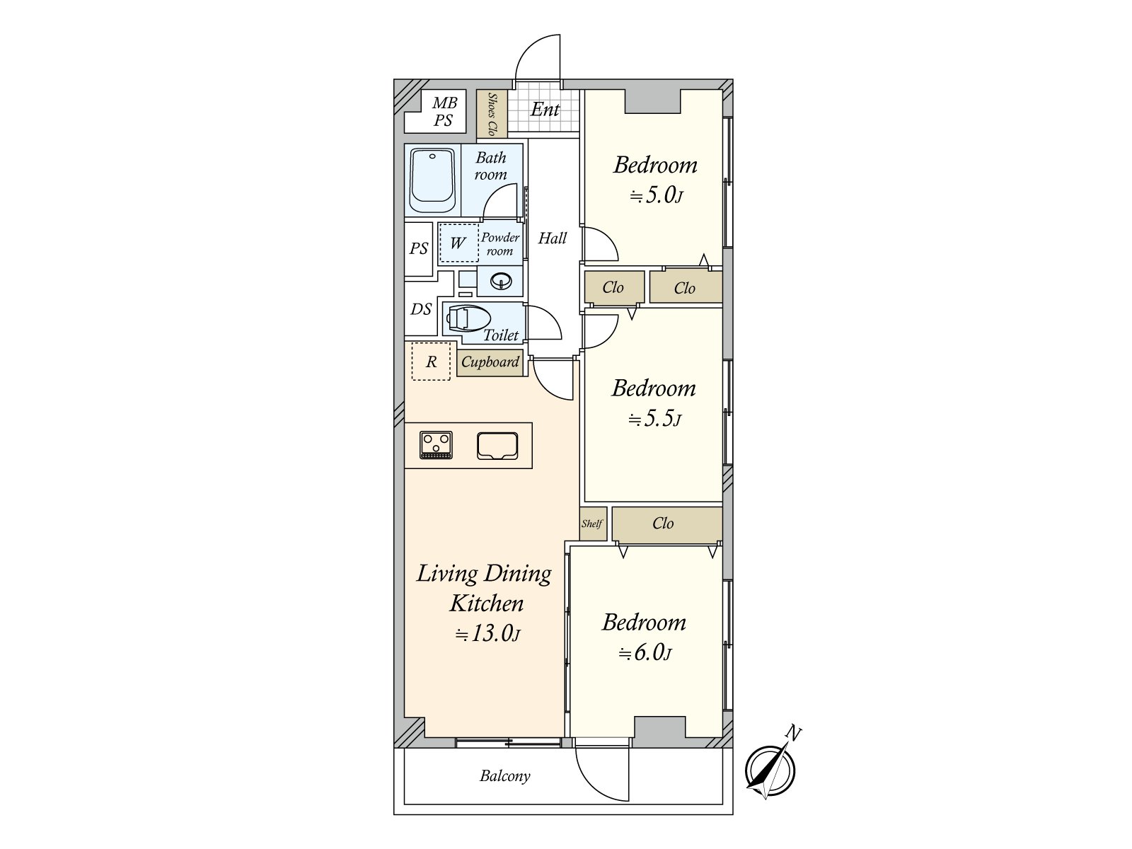 ○ 60.50 square meters of exclusive area, 3LDK type