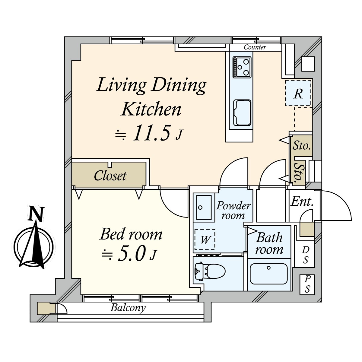 ○ 39.61 square meters of exclusive area, 1LDK type