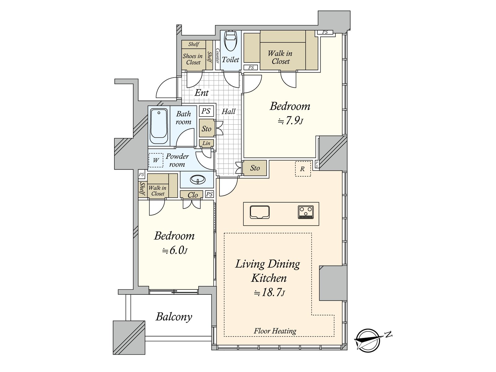 ・76.56 square meters of exclusive area, Plan of 2LDK+2WIC+SIC