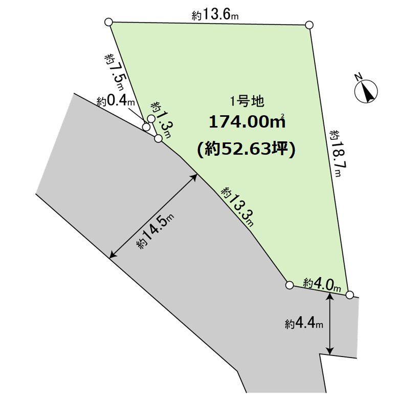 ○ Land area: 174.00 square meters (about 52.63 tsubo)