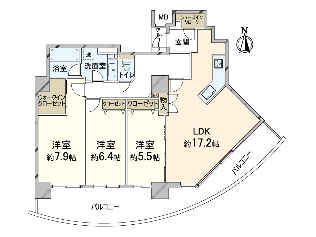 * 3LDK of 87.26 square meters of exclusive area