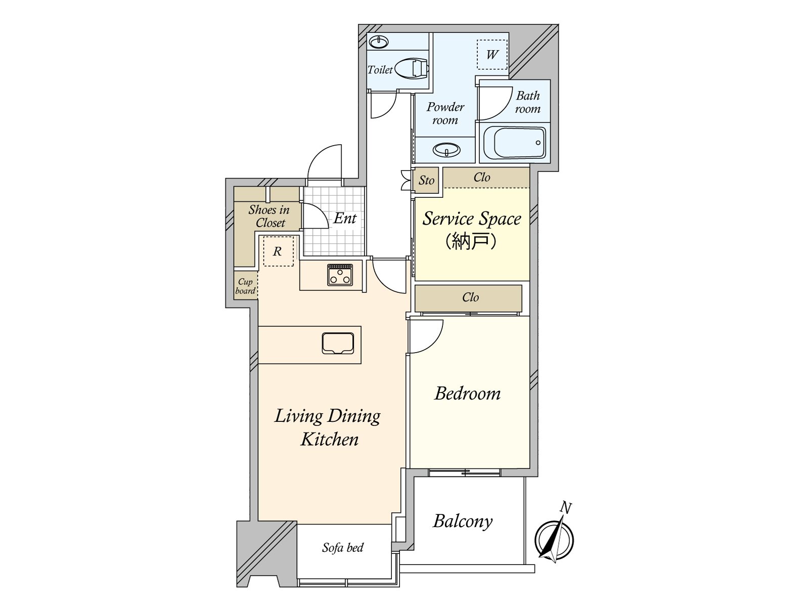 ○ 54.24 square meters of exclusive area, Plan of 1SLDK