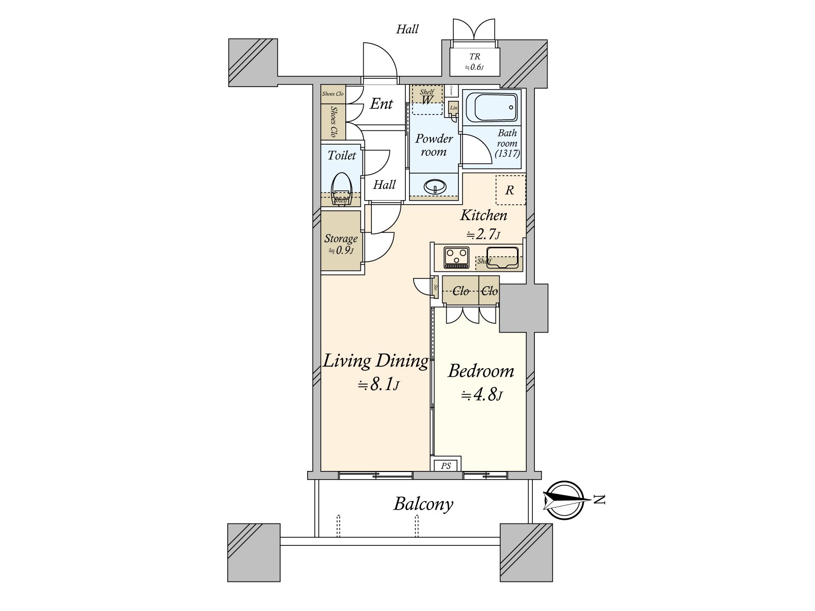○ The storing including a closet and the storeroom is abundant