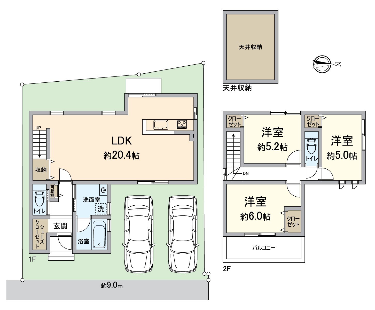 ○Two cars can be usually parked (Depending on car type)