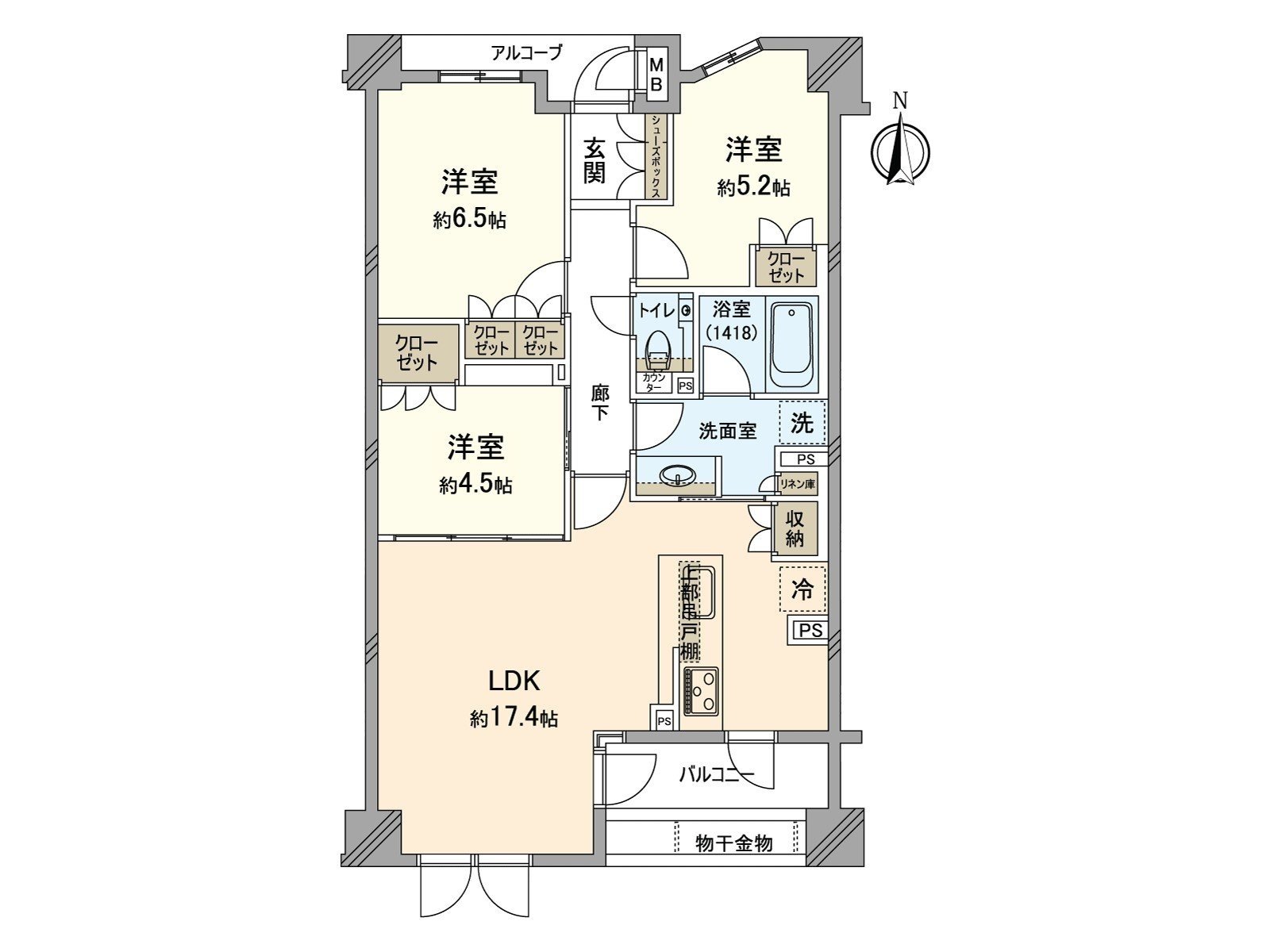 * 74.23 square meters of exclusive area, 3LDK