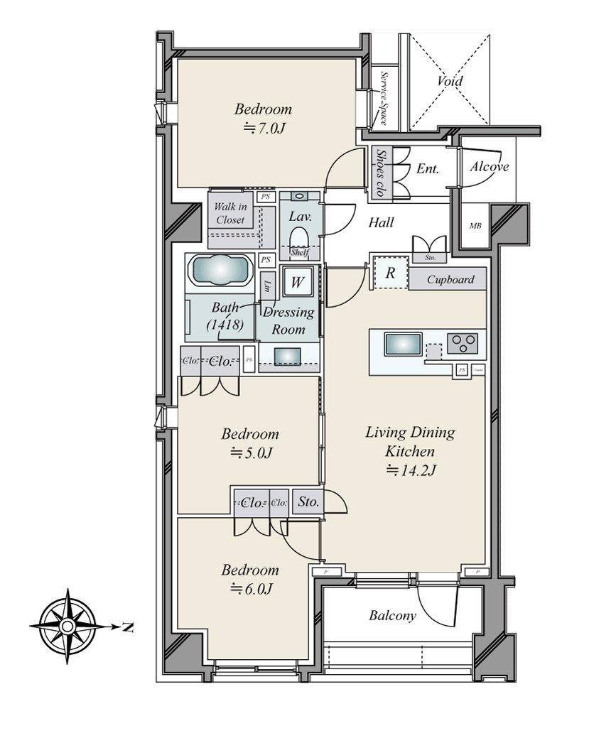 * Walk-in closet (about 7.0 quires of Western-style rooms)