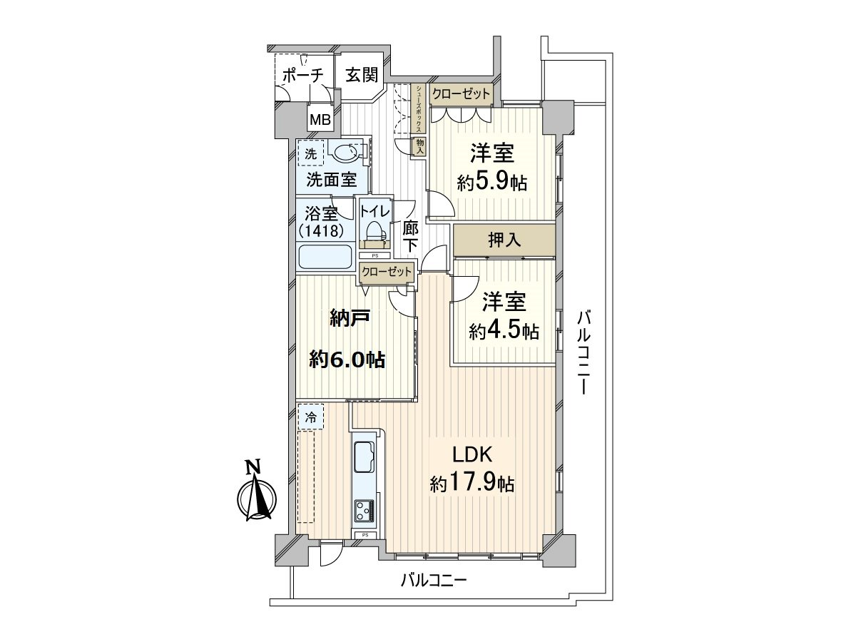 * 2SLDK of 79.17 square meters of exclusive area