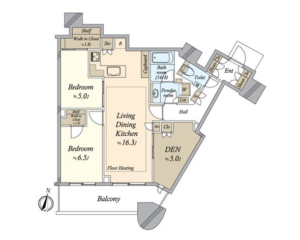 ○ 専有面積76.90平米 2LDK+DEN+2WIC+TR