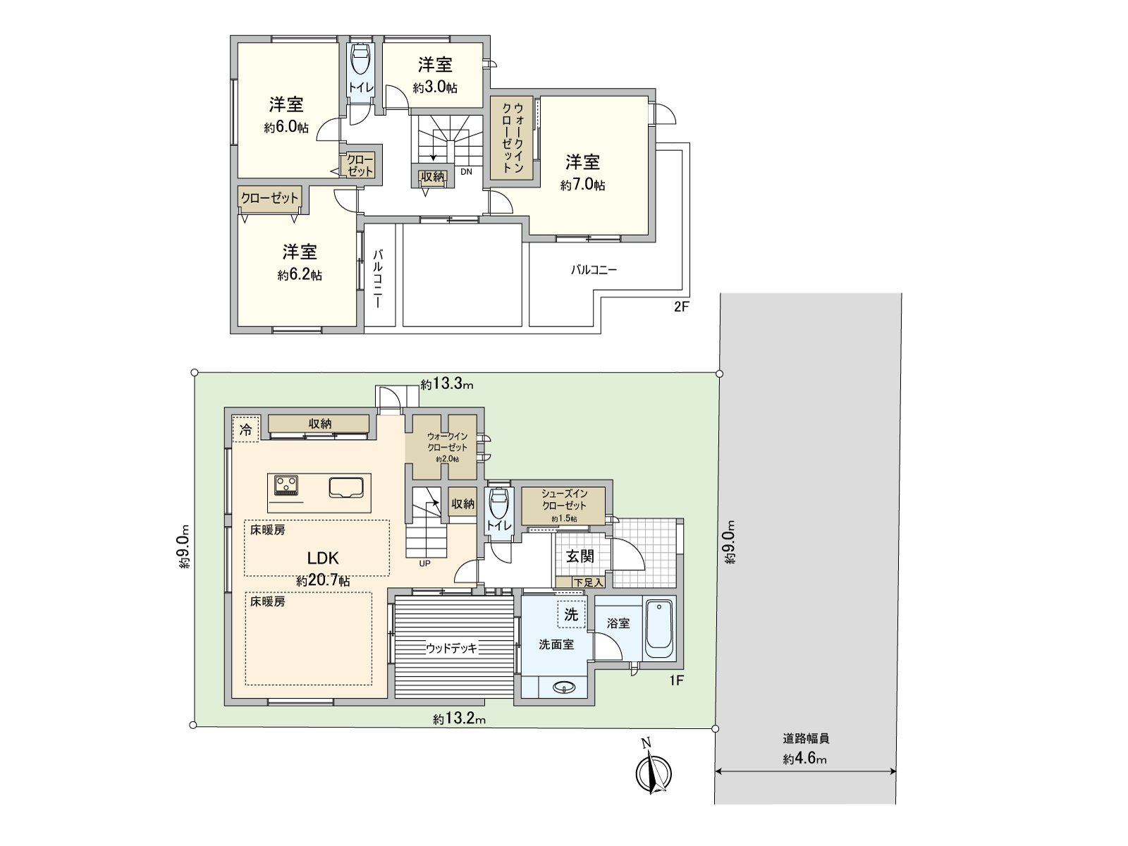 ○ アウトドアリビング空間を楽しめるウッドデッキ