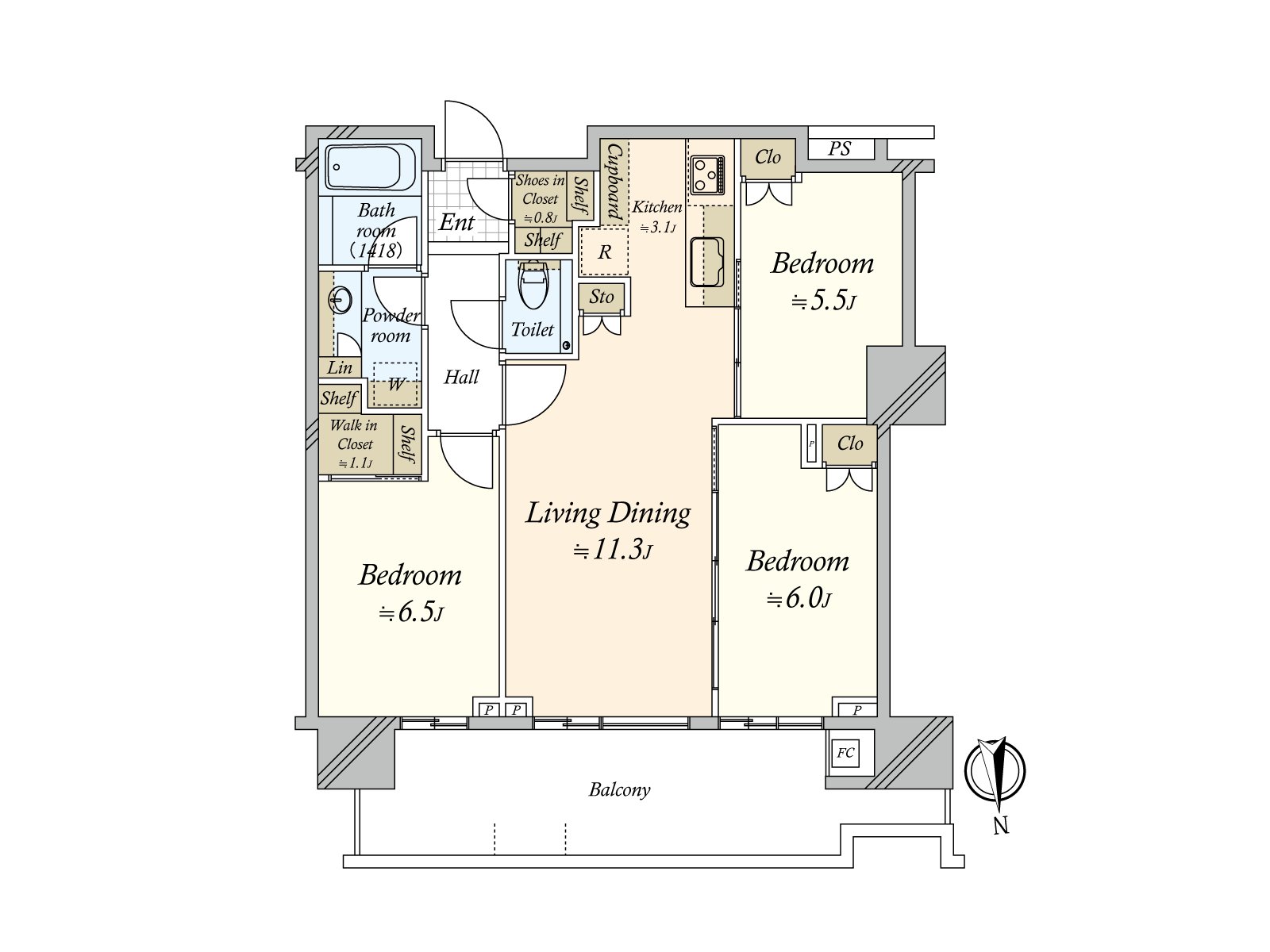 ○ 専有面積70.14平米の3LDK+WIC+SIC