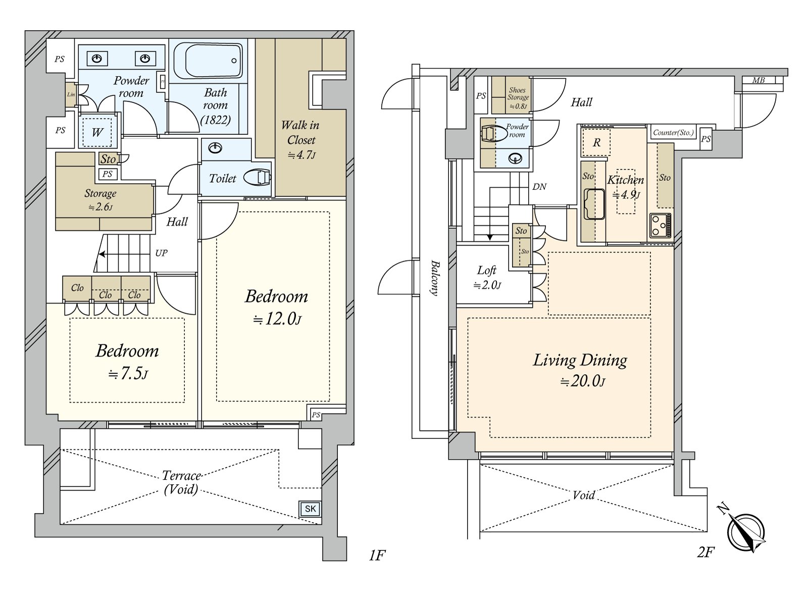 ・1階部分は南西×北西向き・2面採光により、日照・通風良好