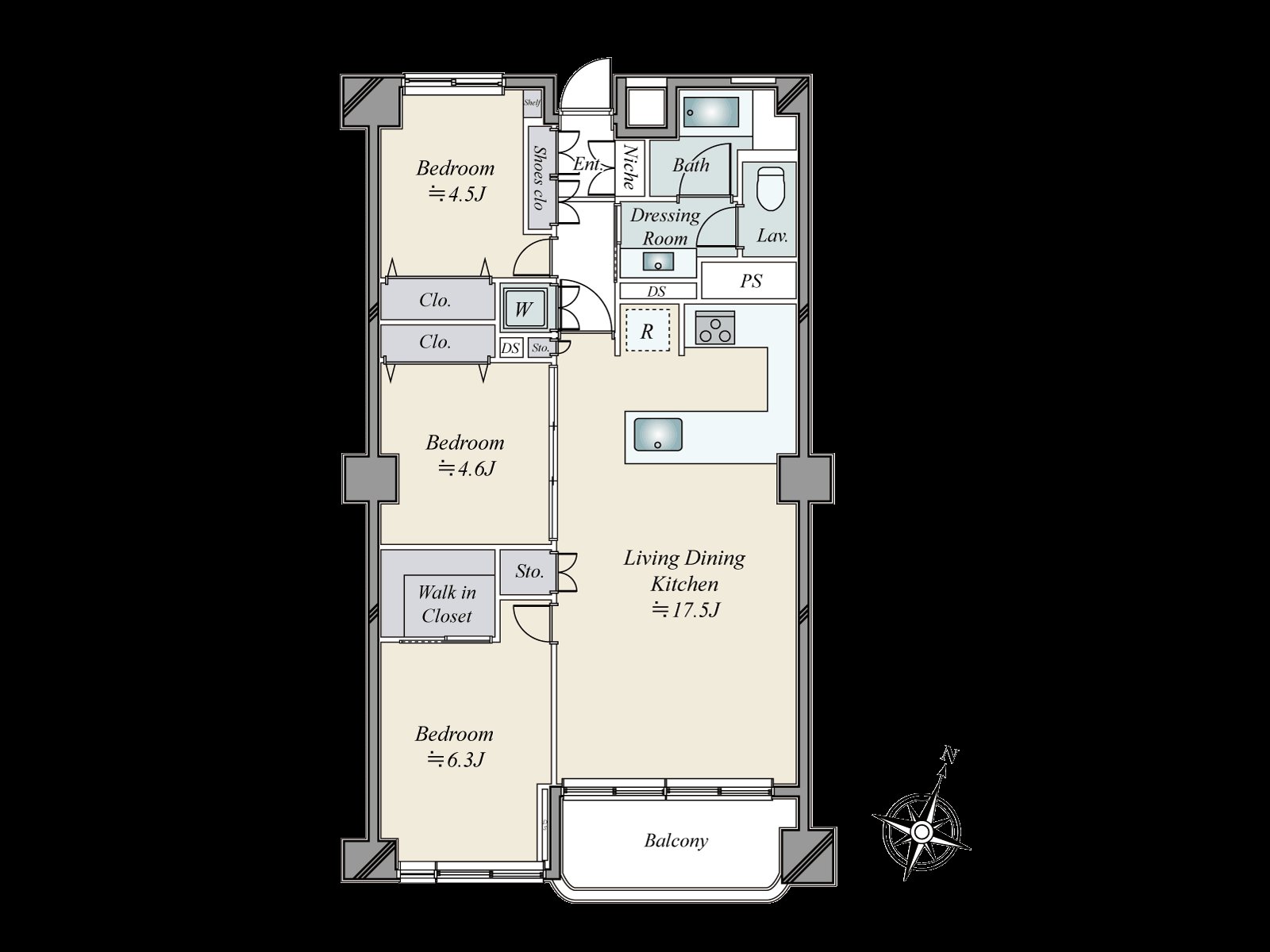 ○ 72.71平米の3LDKタイプ