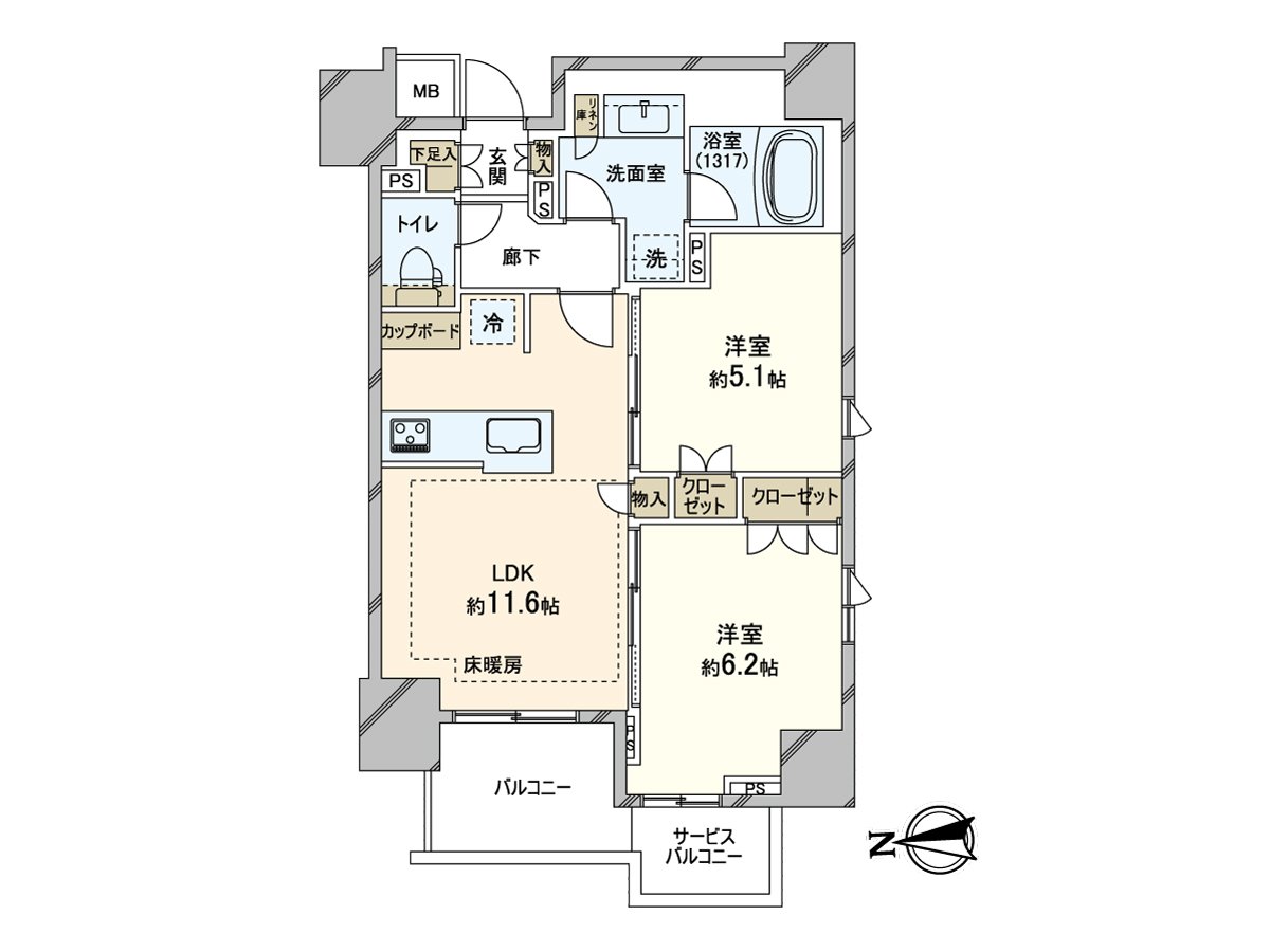 ○専有面積55.23平米の2LDK