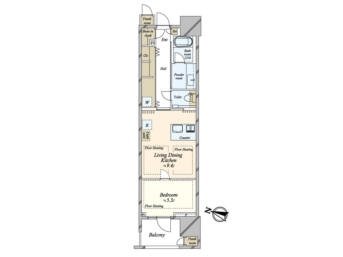 ○専有面積42.92平米の1LDK