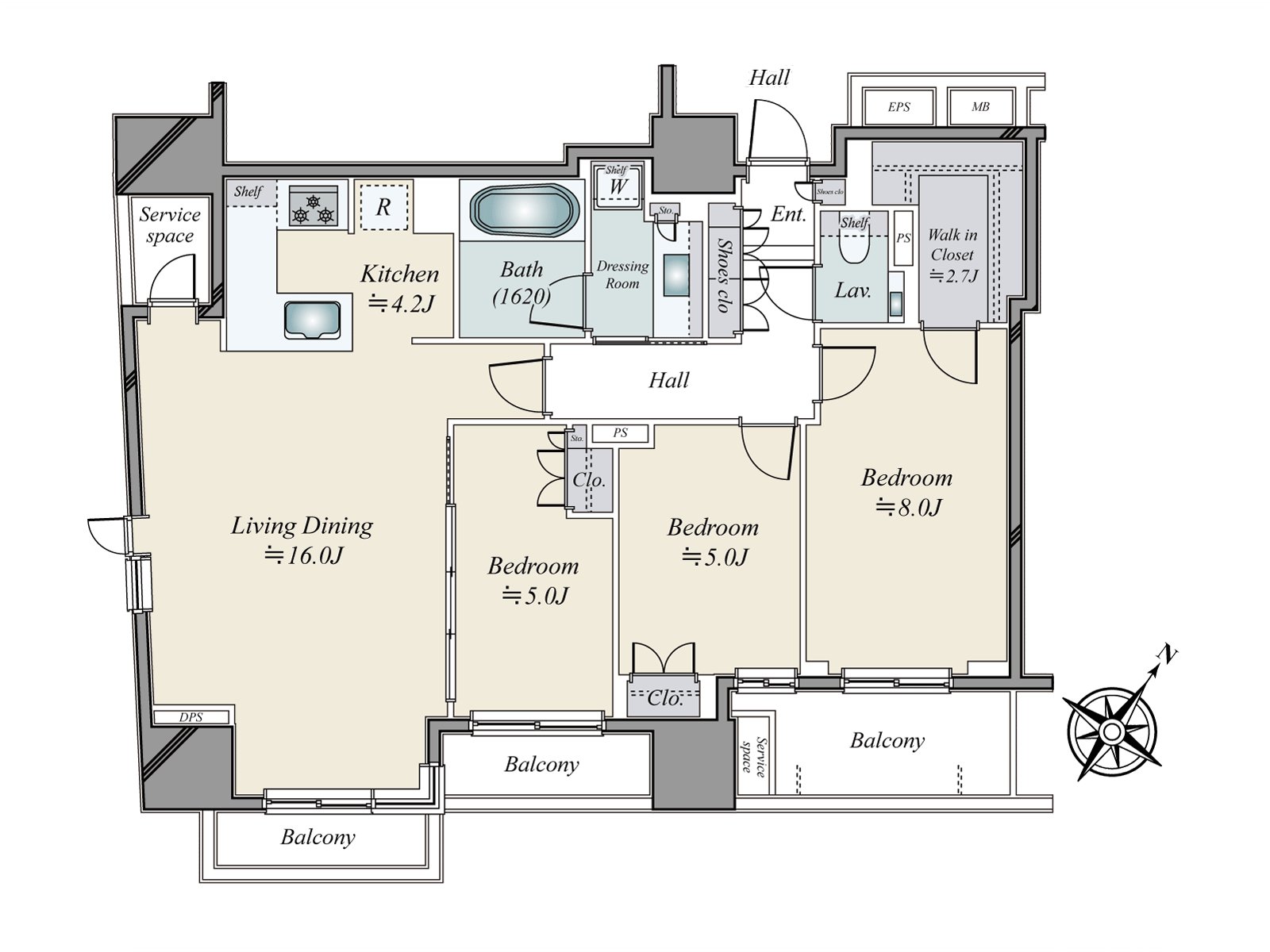 洋室約8.0帖です。大きな窓から明るい自然光が差し込むBedroomです。バルコニーに面しており、開放感のある眺望が楽しめます。