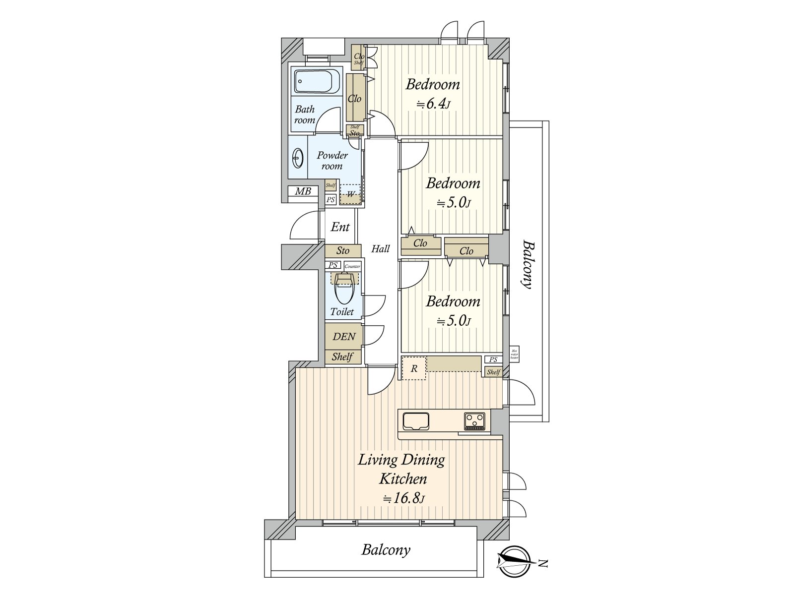 ○ 専有面積 76.96平米、3LDKタイプ