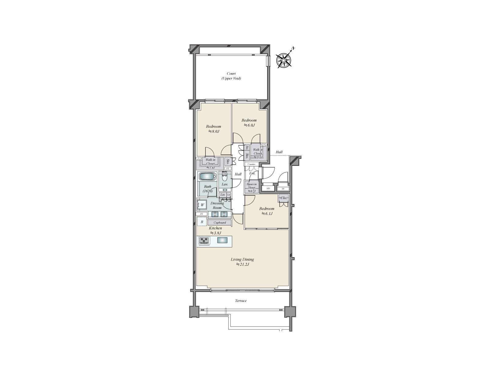 ・ テラス面積20.16平米、コート面積25.33平米あり