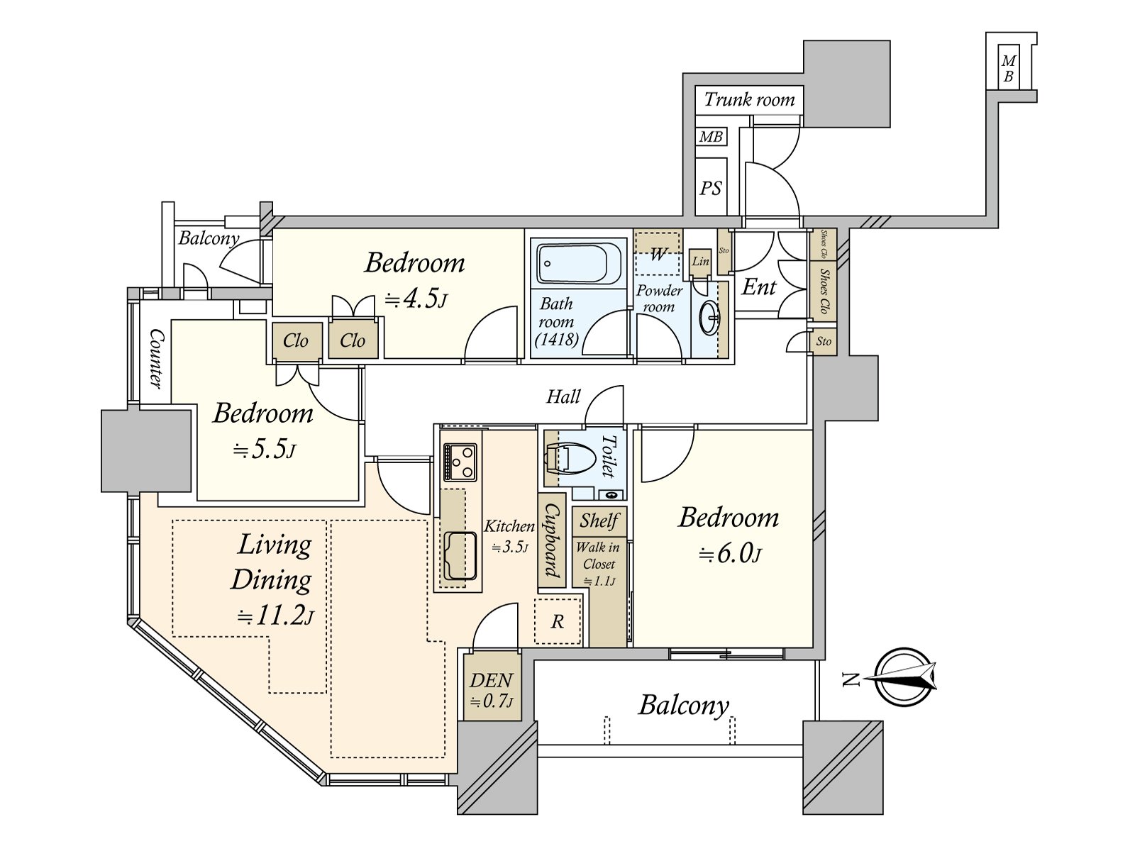 〇 専用トランクルーム付(面積1.35平米、専有面積に含む)