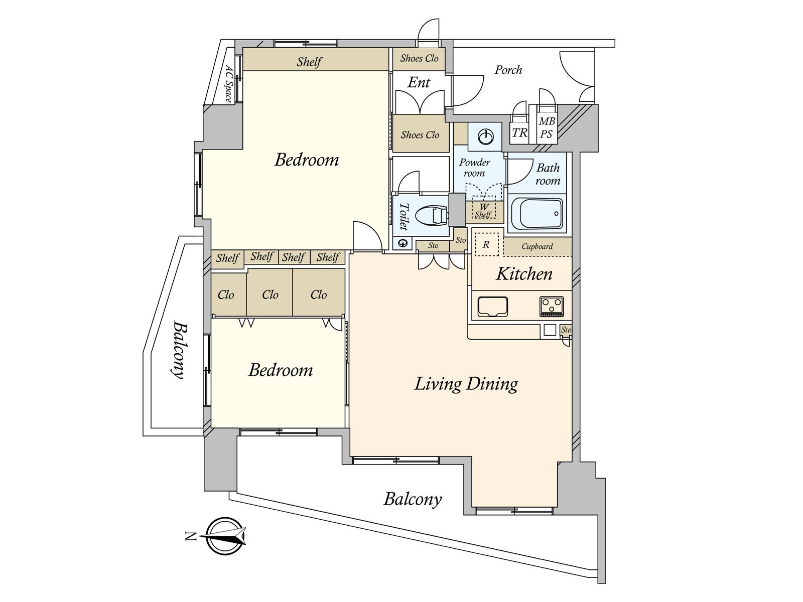 ○ 専有面積76.01平米、2LDKの間取