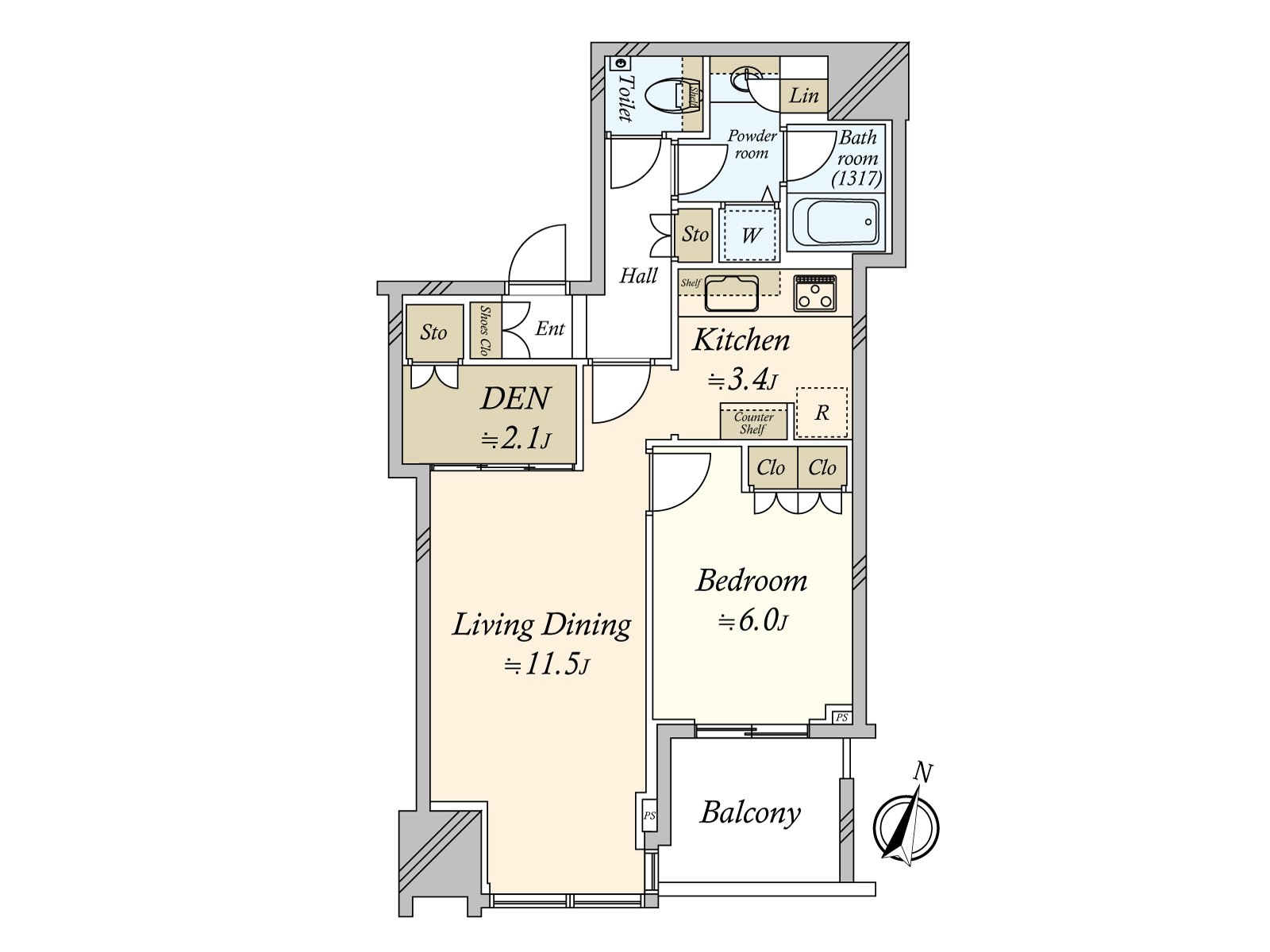 ○ 専有面積54.24平米、1LDK+DENの間取り