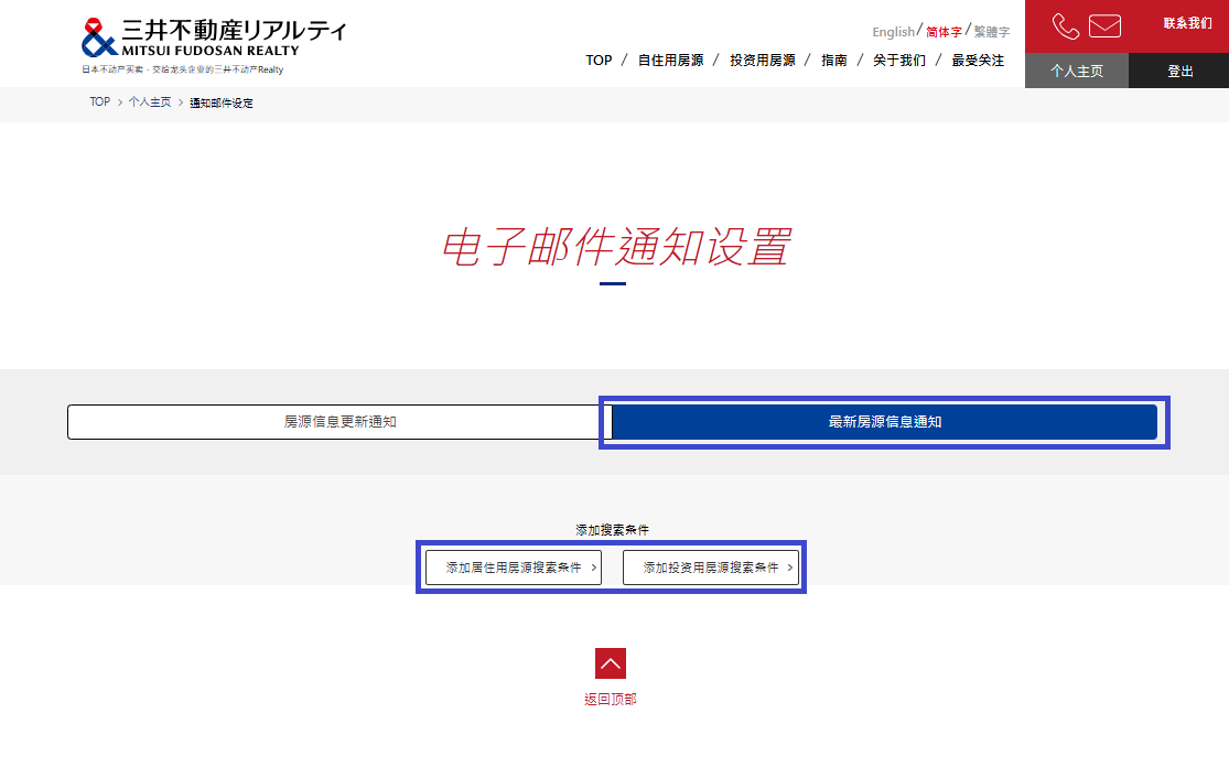 在「我的主页」中登记您的购房条件后,如有匹配到现有或是新到房源,将会自动发送邮件通知,让您不会错过最新咨询。