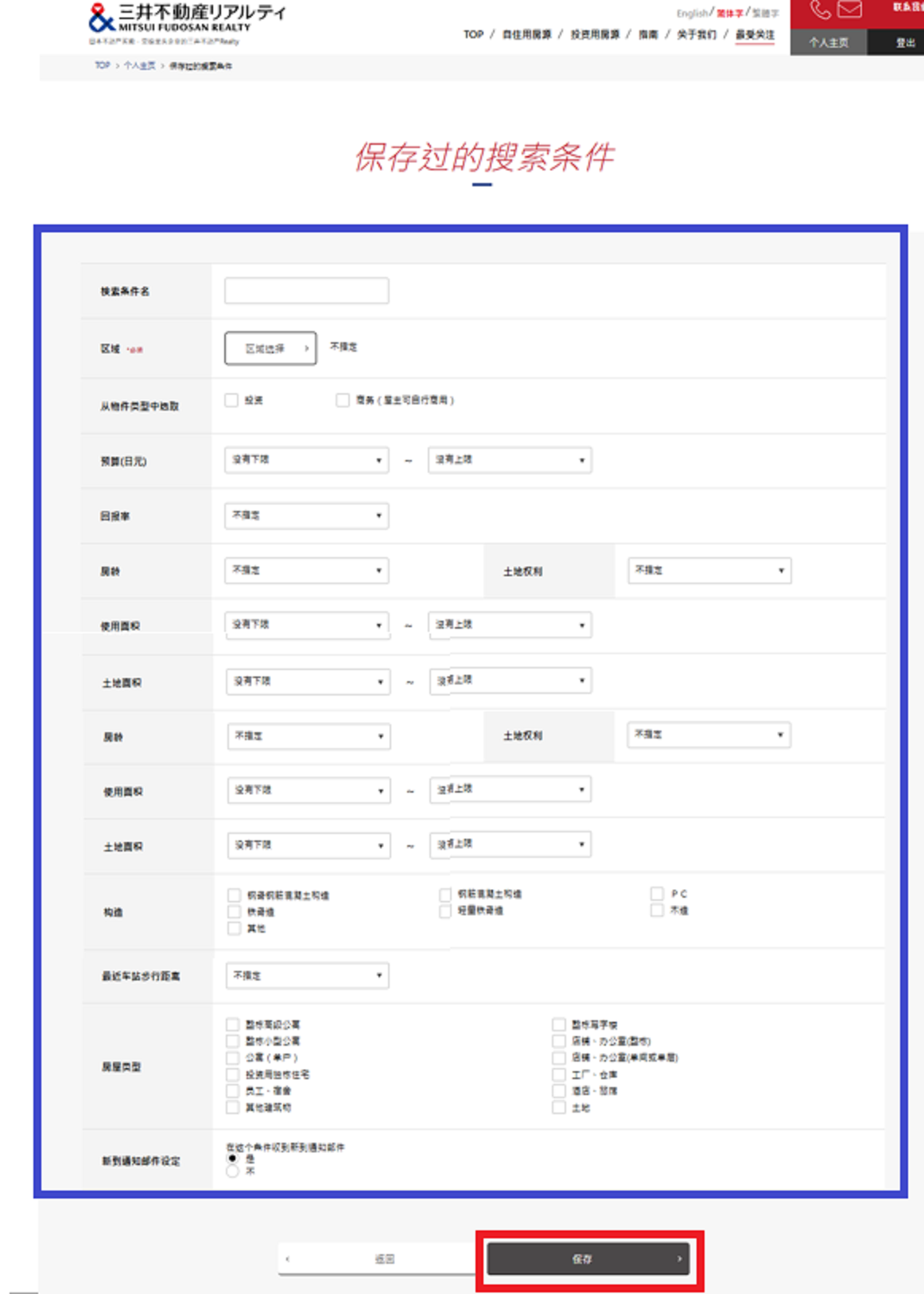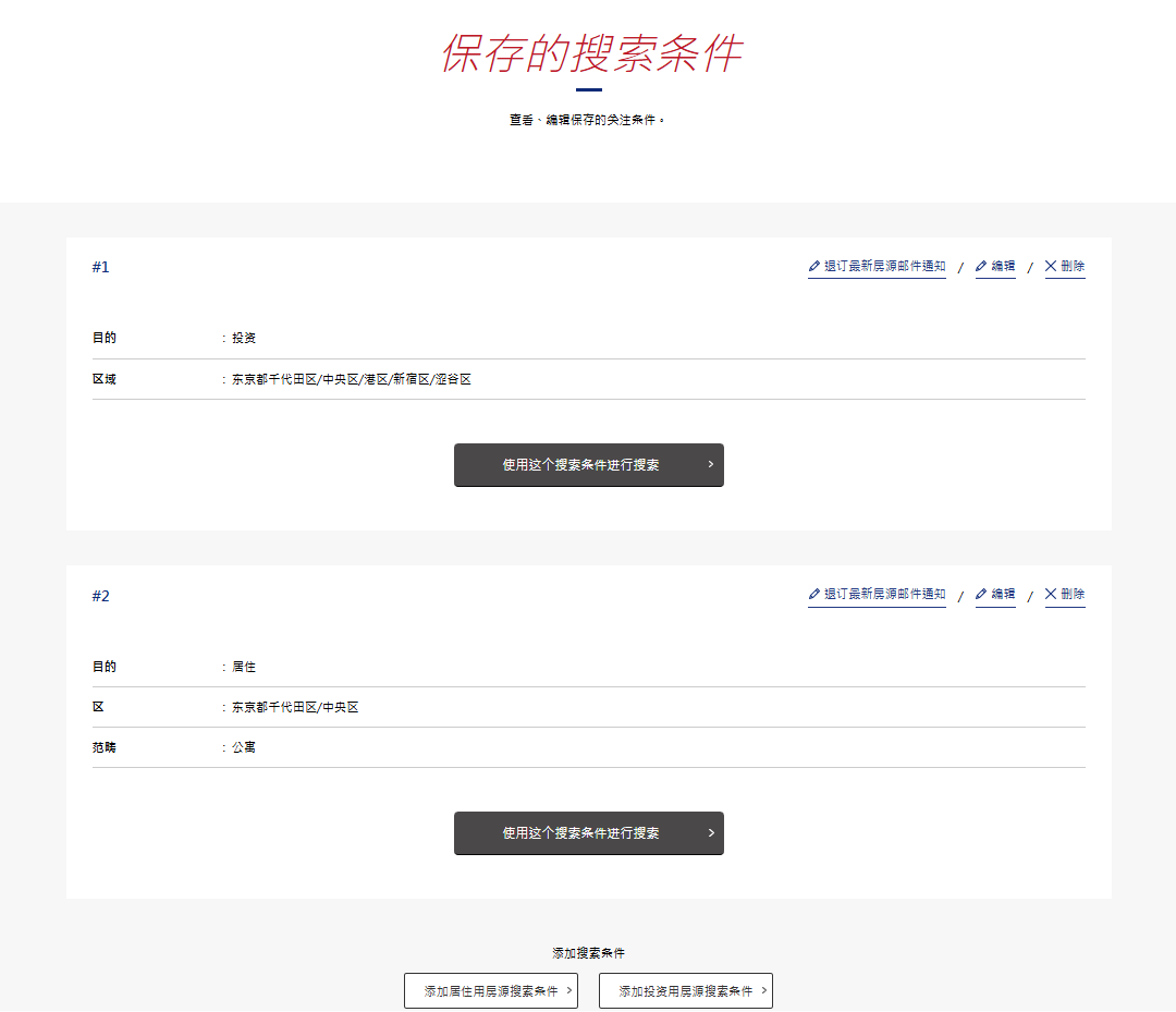 可进行诸如保存心仪的房源,或是设定新到房源的通知等的操作。