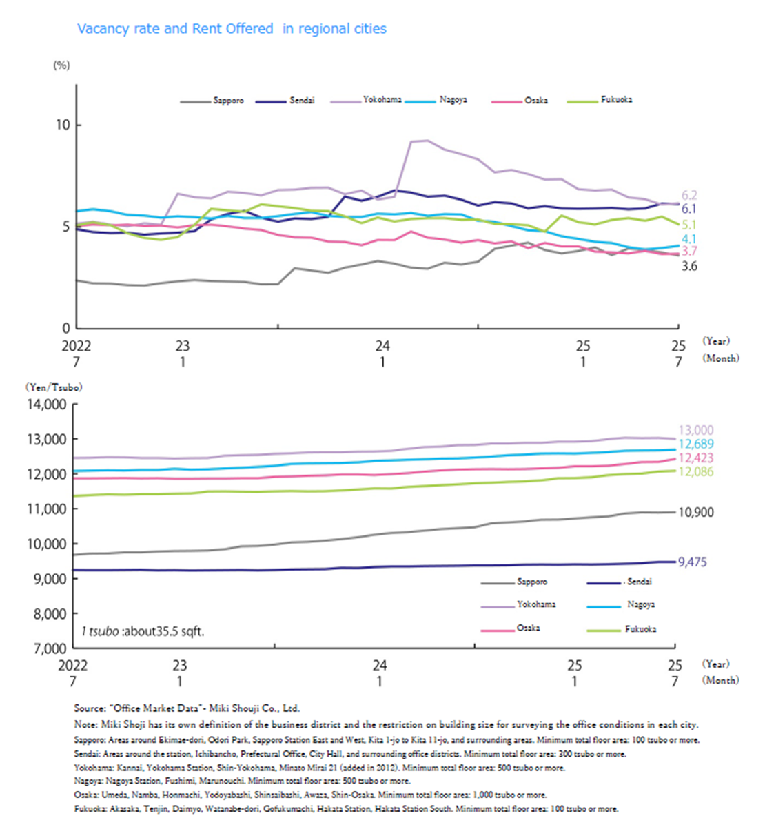 ・While tenants are increasingly active in such markets as Sapporo, Sendai, Okayama, and Hiroshima as well, there is little new supply in these markets and demand exceeds supply in many areas. High utilization and rising rent levels are expected to continue for the time being.