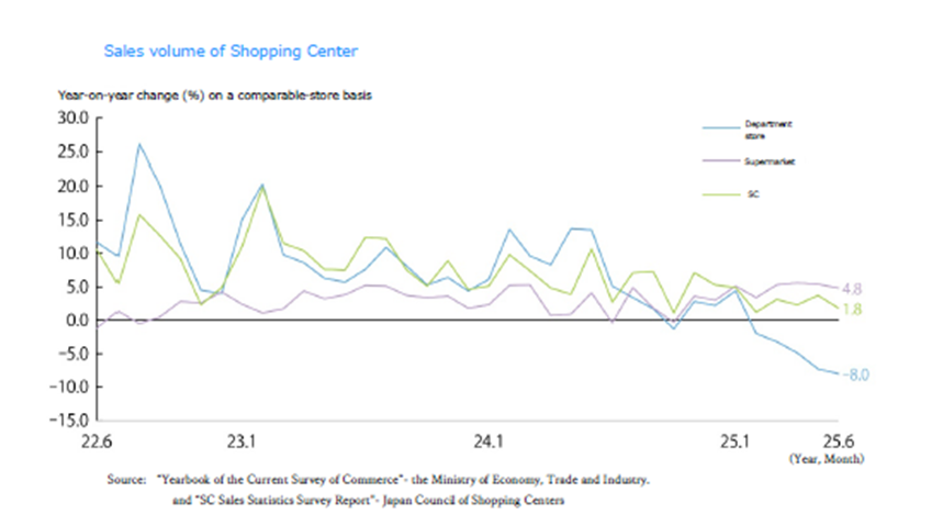・Existing store sales for shopping centers (overall) were approximately JPY 691.82 billion (up +6.9% YoY) in August 2025. Sales were up YoY thanks to the success of summer vacation events in attracting customers and the lack of extraordinary closures and shortened business hours due to typhoons, which had occurred last year.