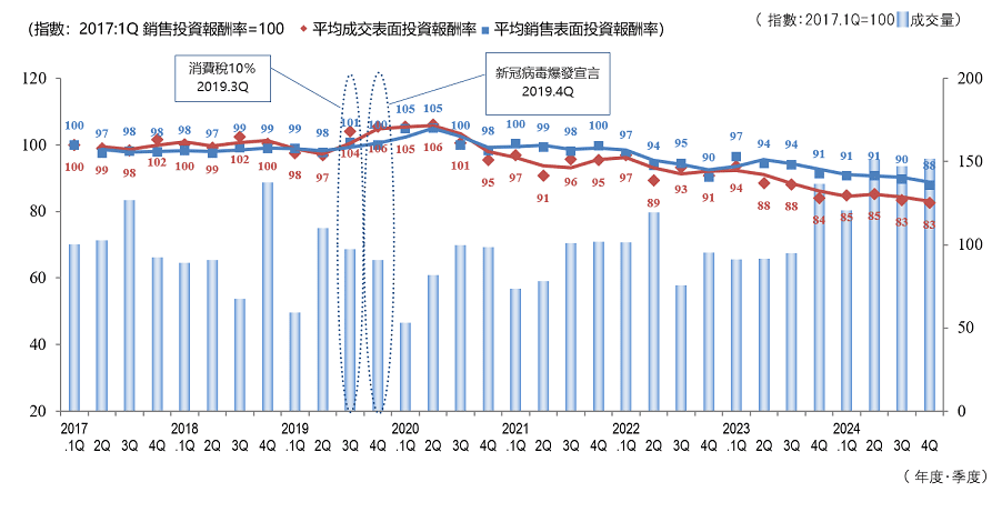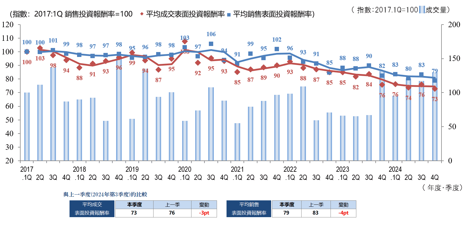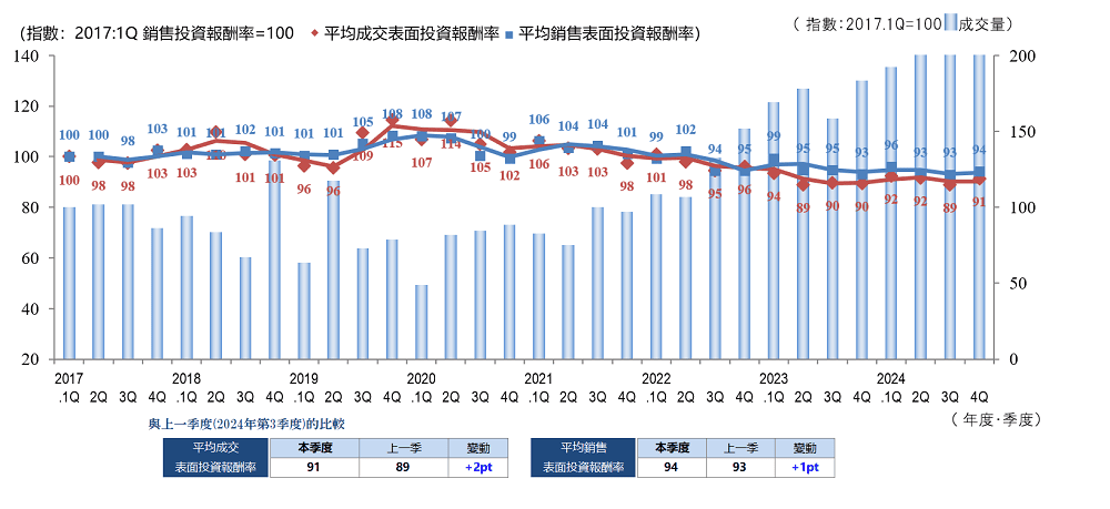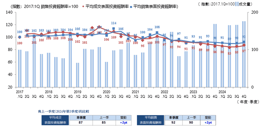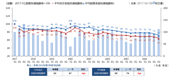 ・成交件數、平均成交表面投報率...... 季度(3個月)內成交件數及其平均表面投報率(含假設值)