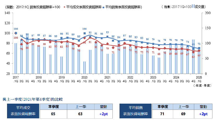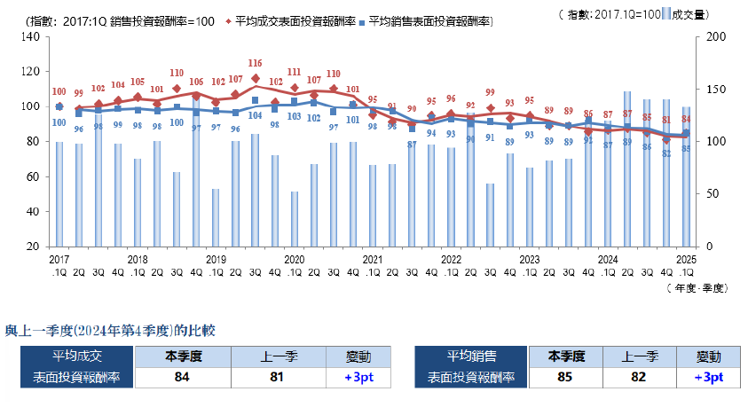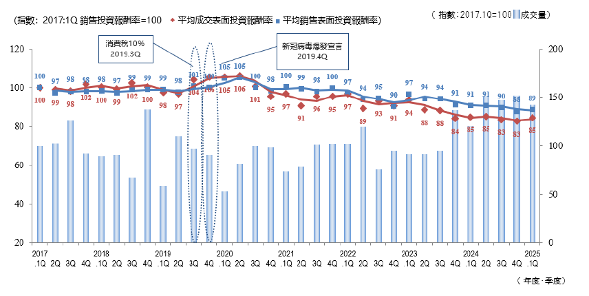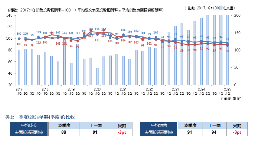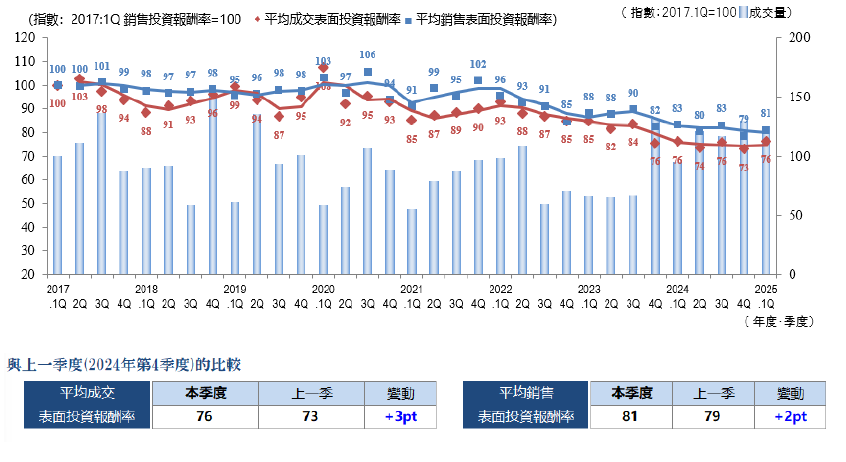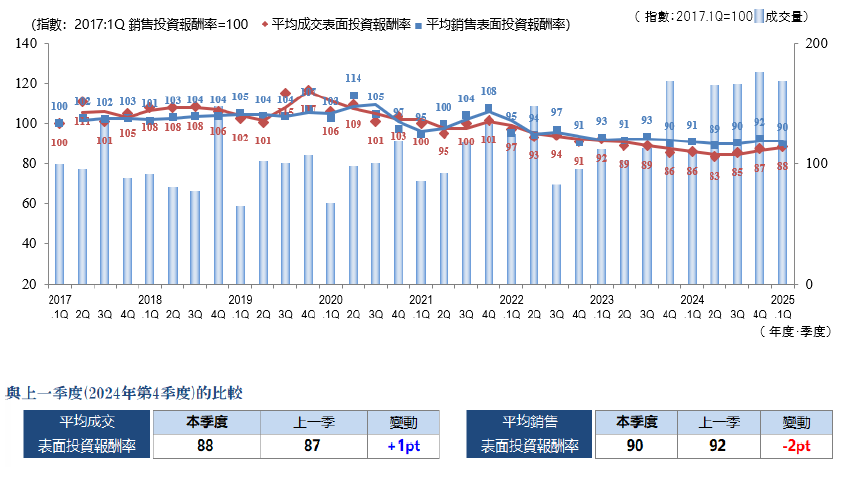 ・成交件數、平均成交表面投報率...... 季度(3個月)內成交件數及其平均表面投報率(含假設值)