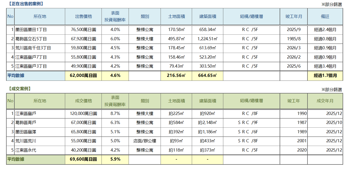 而舊耐震標準物件及交通便利性不足的物件,則需要通過更具吸引力的價格(即更高回報率)來實現交易,市場極端進一步加劇。
