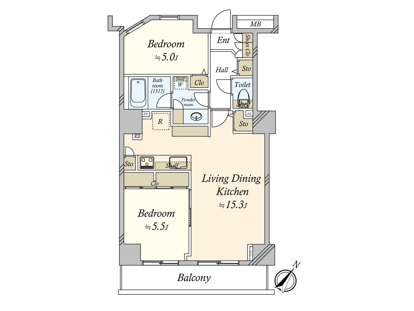 ○ 私人使用面積60.53m²(牆芯)的2LDK型