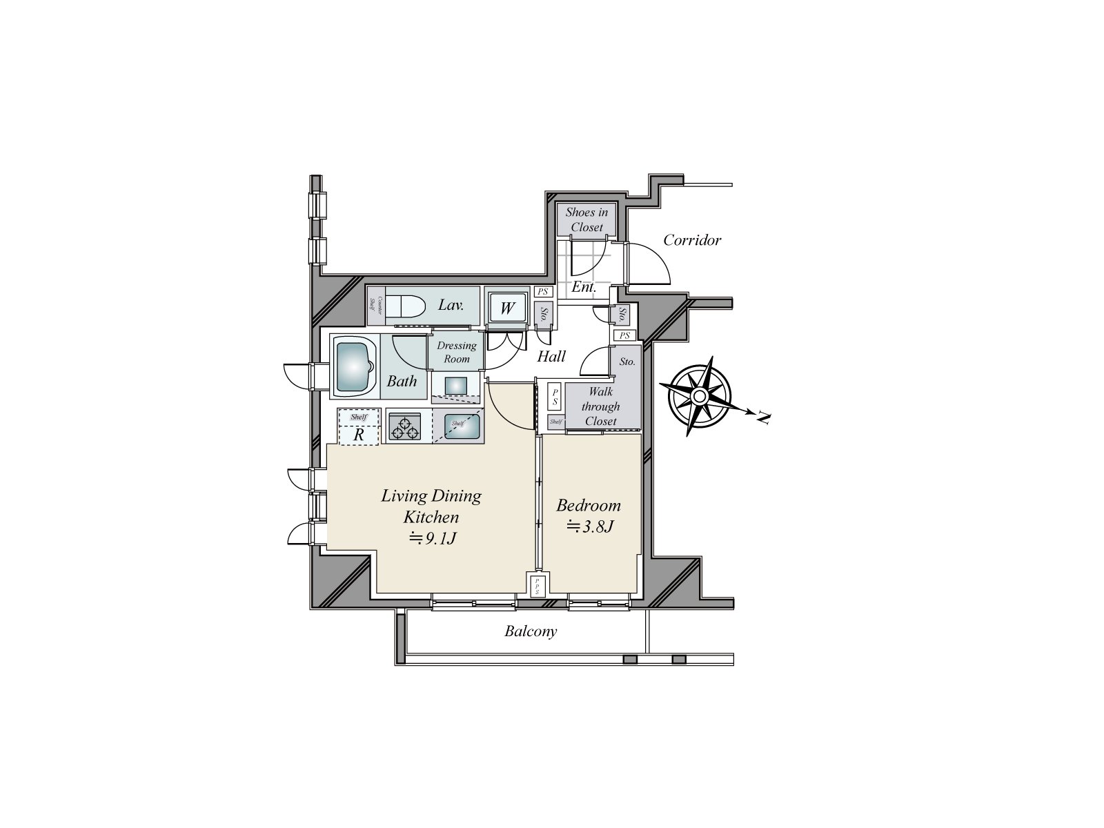 ・0.8平方公尺的貯藏室有(在私人使用面積裡面含有)