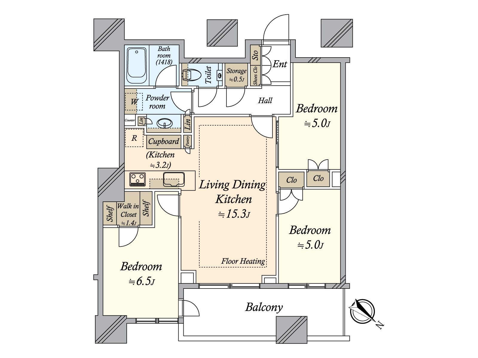 ○私人使用面積72.38平方公尺3LDK+WIC+S