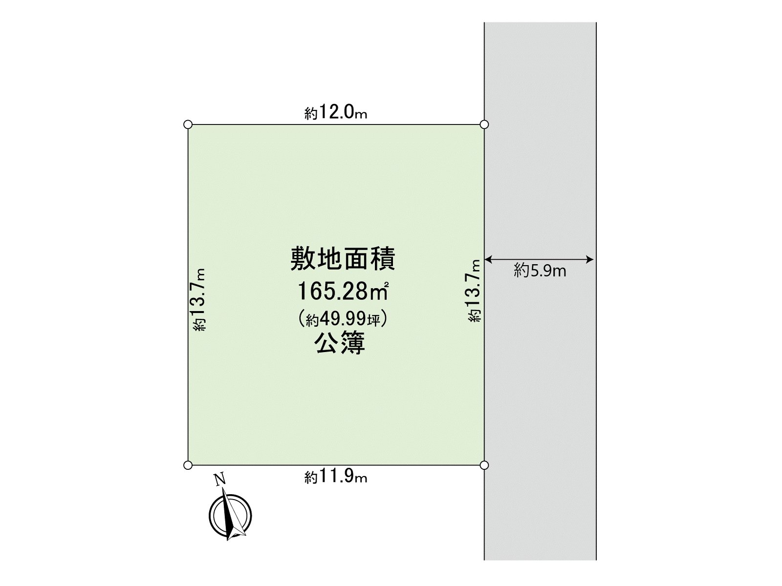 ・正面寬度約13.7m×縱深約11.9m的整形地