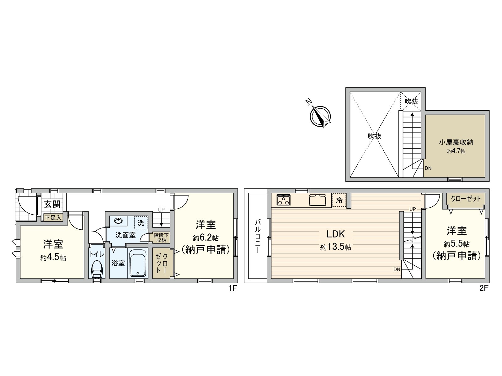 ○ 在1LDK+2S有小房間背後收納