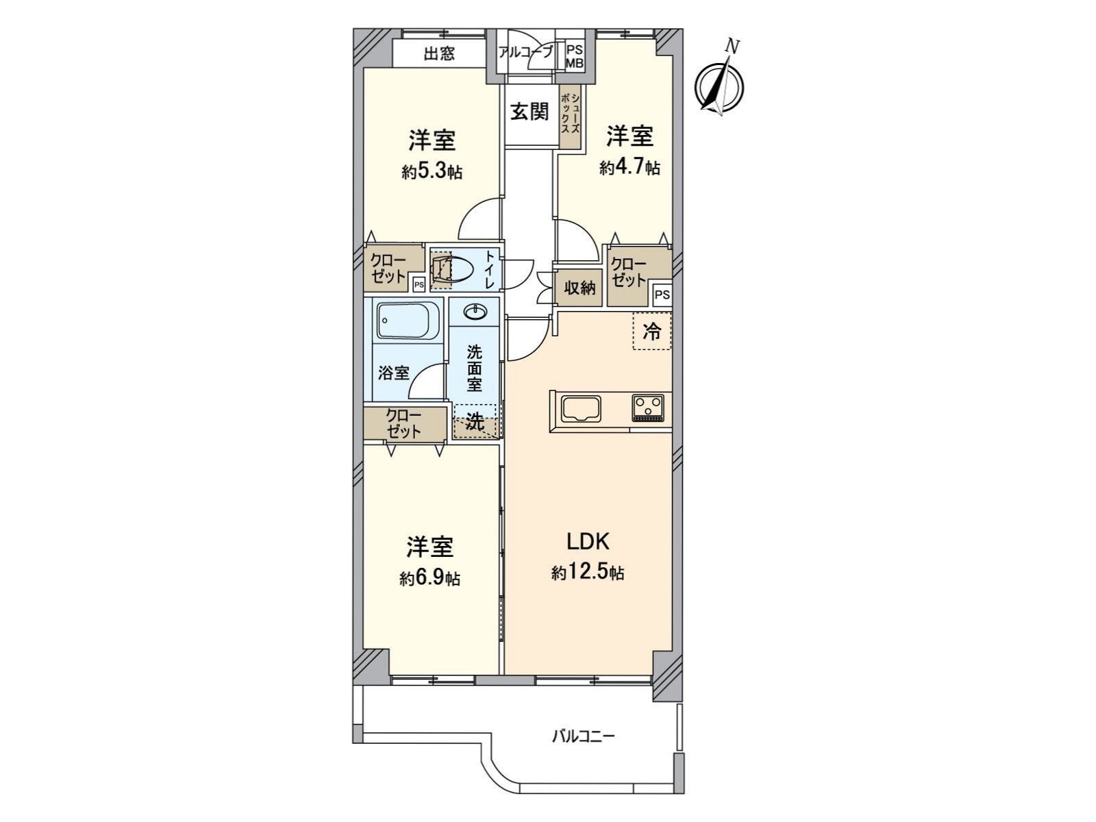 ・12.5張塌塌米客廳,西式房間6.9張塌塌米等的容易使用的配置