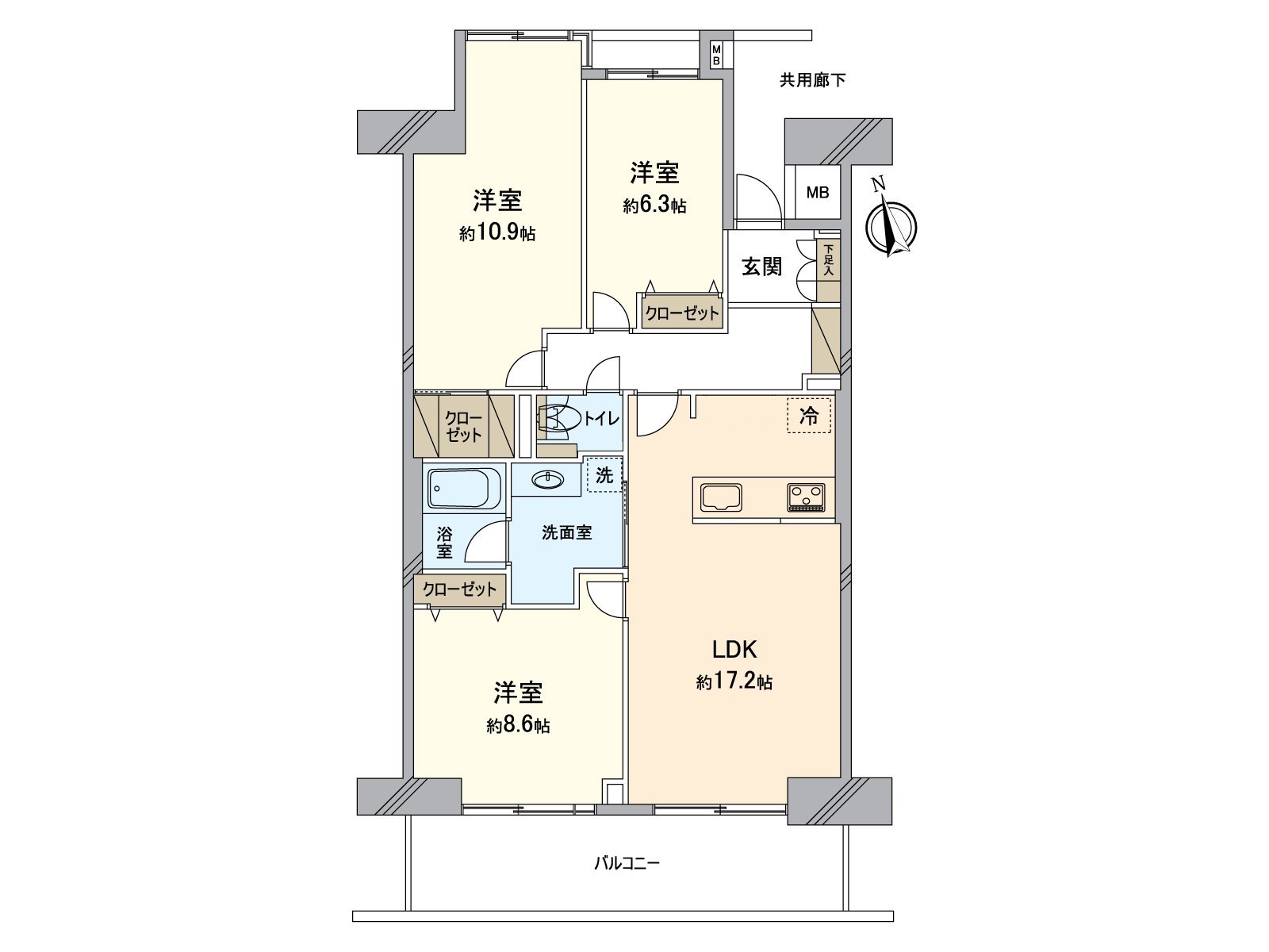 ・專有95.73平方公尺的3LDK,朝南西約17張塌塌米LDK