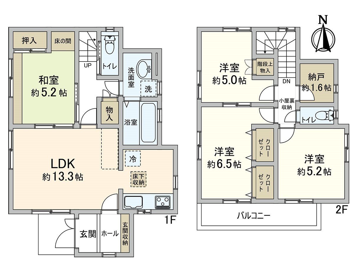 ○ 約5張塌塌米2樓西式房間和約6.5張塌塌米如果打開門的話,也作為1個房間可以使用