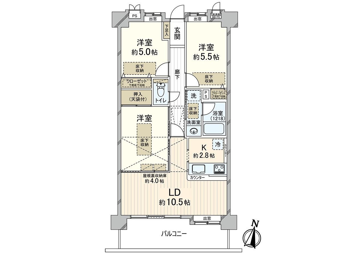 ・6個地方地板下邊收納(和式房間、2個地方西式房間、洗手間、2個地方壁櫥)