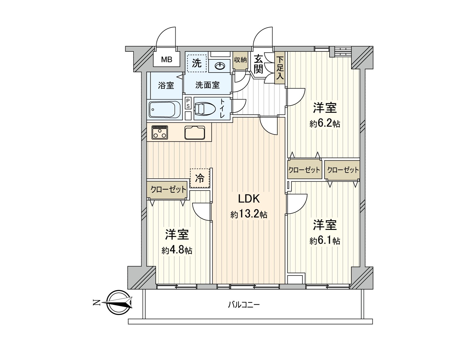 ○ 私人使用面積65.57平方公尺的3LDK