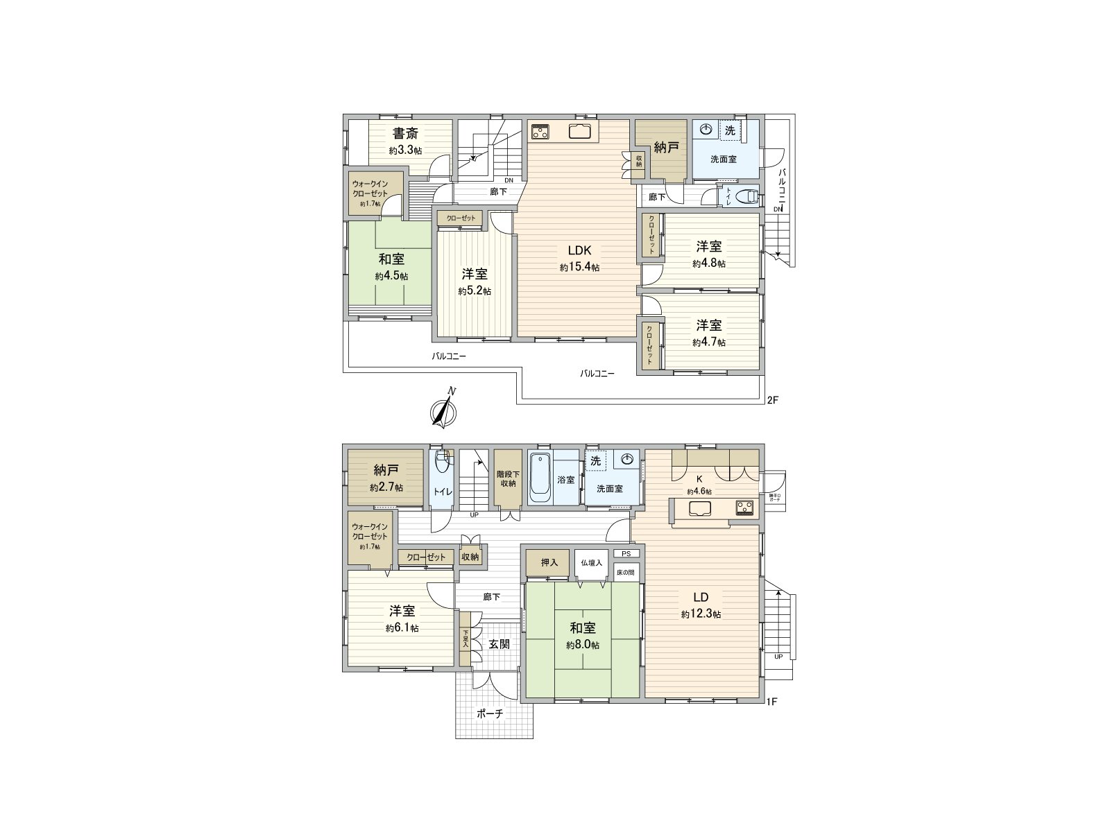 ○ 2個地方和式房間(約8.0張塌塌米,約4.5張塌塌米)、約3.3張塌塌米的書齋